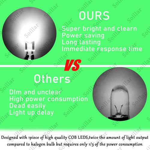 ★Bright : Designed with 1 piece of high-quality COB LEDs, twice the amount of light output compared to halogen bulb but requires only 1/3 of the power consumption. Perfect to upgrade your bulbs to LED type.