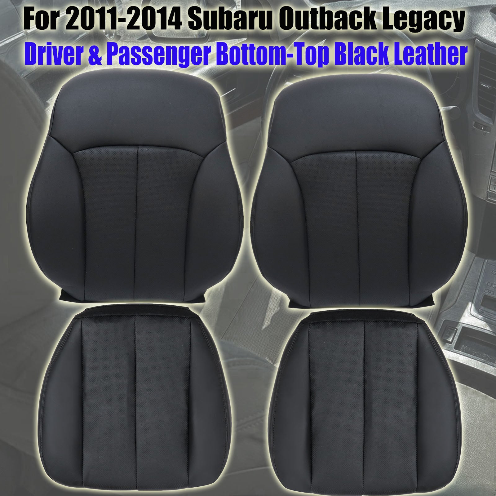 For 2010-2014 Subaru Outback Legacy Driver & Passenger Side Bottom & Top Replacement Leather Seat Cover Black