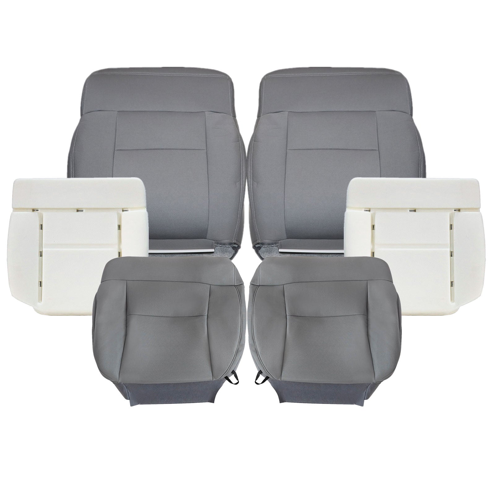 Front Driver & Passenger Bottom & Top Cloth Seat Cover Flint Gray & Both Side Bottom Foam Cushion 2004-2008 For Ford F-150 Lariat XL XLT STX FX4